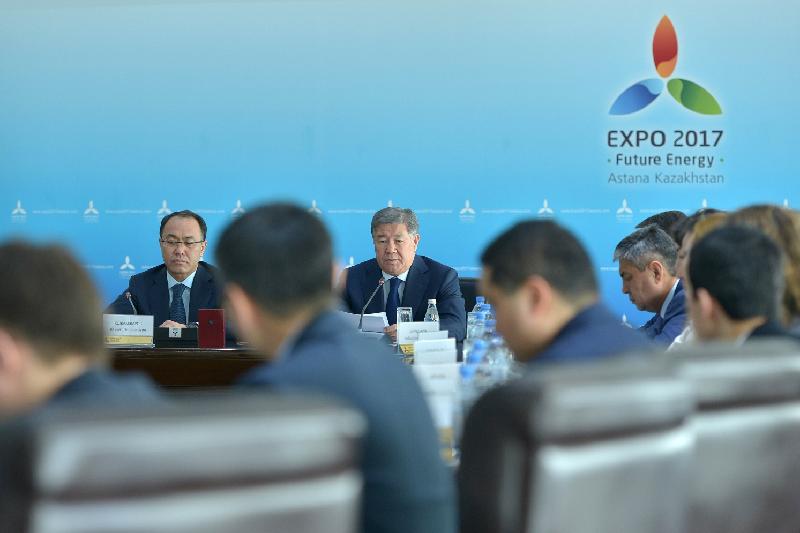 Кеше «Астана ЭКСПО-2017» ҰК» Басқарма төрағасы Ахметжан Есімов пен Мем­­лекеттік қызмет істері және сыбайлас жемқорлыққа қарсы іс-қимыл агент­тігі төрағасы Қайрат Қожамжаров ЭКСПО алаңында жұмыс істеп жат­қан компаниялардың басшылары, бас мердігерлердің қатысуымен жиын өткізді.