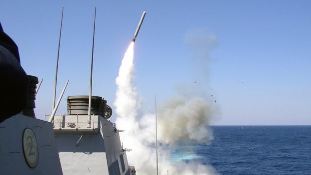 Пентагон өкілі Хомс қаласы маңындағы Сирия өкіметтік әскерінің «Шайрат» әуе базасына американ кемелерінен шамамен 59 «Томогавк» ракетасы атылды. Бұл туралы ВВС хабарлайды.