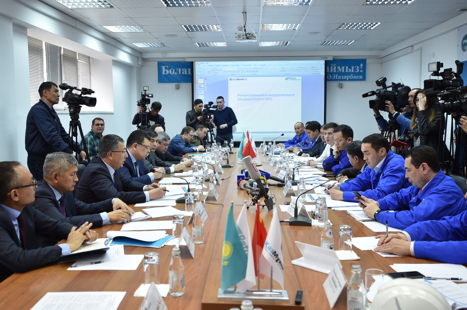«ҚазМұнайГаз» АҚ-ның басшылығы министрге жобаның бірінші кезеңі бойынша атқарылған механикалық жұмыстардың аяқталып, екінші кезең нысандарында құрылыс-монтаждау жұмыстарын жүргізу кестесі туралы баяндады. Бүгінде «ПетроҚазақстан» мұнай өңдеу зауытындағы құрылыс жұмыстарына  4 мыңға жуық маман тартылған.  Оның бір  мыңдайы қазақстандық мамандар.