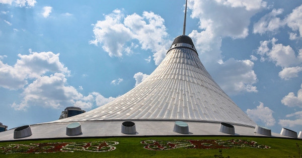 Шаһардың жаңа орталығының дәл кіндігінде орналасқан әсем ғимарат көшпелі қазақ халқының көшпелі тіршілігінен хабар беріп қана қоймай, сол халықтың өз қолымен тұрғызған хан шатырларының тұтас бір жиынтық көрінісі іспетті елестейді. Елорданың сол жағалауынан орын тепкен алып нысанның құрылысын ағылшындық Foster & Parthers фирмасы жобаласа, түріктің «Сембол Иншаат» компаниясы оны соңына дейін жеткізген. Былтырғы жылы қала күнінде пайдалануға берілген, айналасы 4 жылдың ішінде бой көтерген, берік монолиттік металл қондырғыларынан тұратын «Шатырдың» биіктігі 150 метрді, ал жалпы аумағы 133 шаршы метрді құрайды.