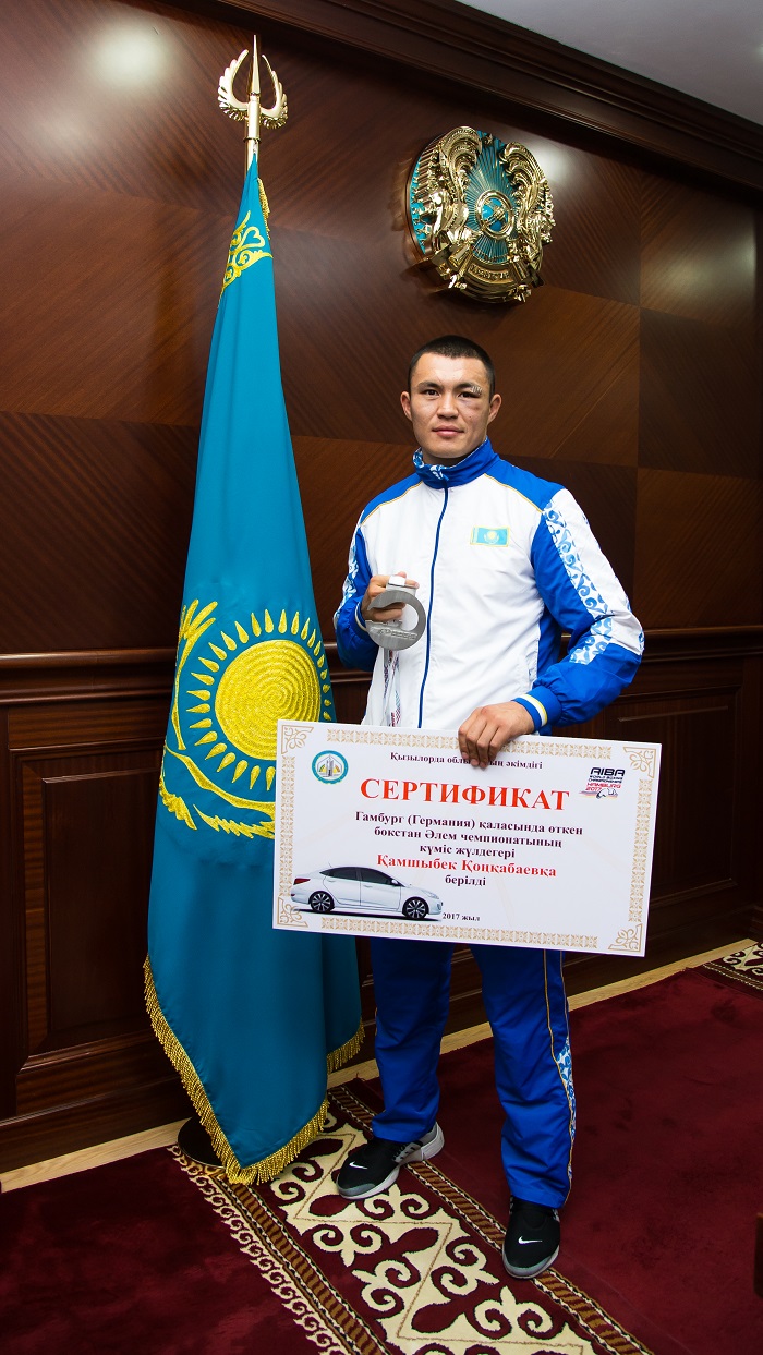 Естеріңізге сала кетейік, Гамбургте 25 тамыз бен 2 қыркүйек аралығында бокстан әуесқойлар арасында өткен ХІХ әлем чемпионатында Қазақстан құрамасы 1 алтын, 2 күміс, 3 қола жүлдені олжалап, жалпыкомандалық есепте 3-ші орынды иеленген болатын. Жерлесіміз Қамшыбек Қомқабаев «күміс» медальдің иегері атанды.