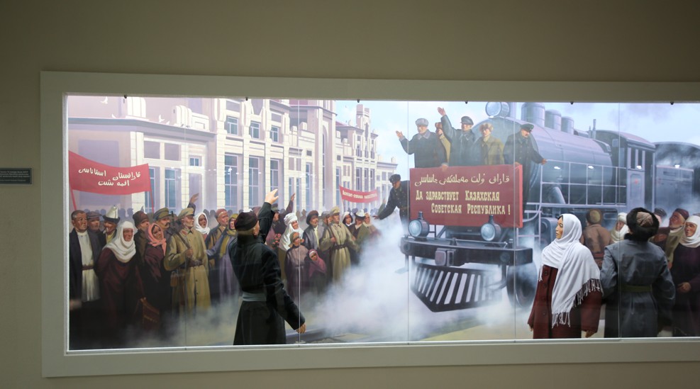 Республика орталығы болған кезеңді қамтитын бөлімде ерекше мәнерде жасалған шам мен ескі сөре, трубалы патефон көзге бірден түседі. Көне қоңыр үстел басында балауыздан жасалған қызметкер мүсіні шешімді бір құжатқа қол қою үшін алдындағы қағаздарға төне түсіп отыр.
