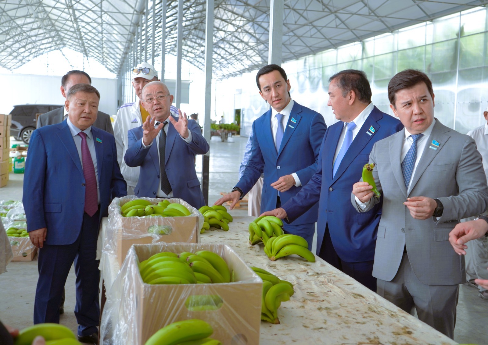 Мәжіліс депутаттары кәсіпкердің бастамасына қолдау білдіріп, елімізге ғана емес, тұтас ТМД кеңістігіне таңсық банан шаруашылығын табысты жүзеге асырып жатқанына ризашылықтарын жеткізді. Жұмысшы мамандықтары жылы шеңберінде отандық аграрлық сала мамандарын жаңа технологияларға үйретуге шақырды.