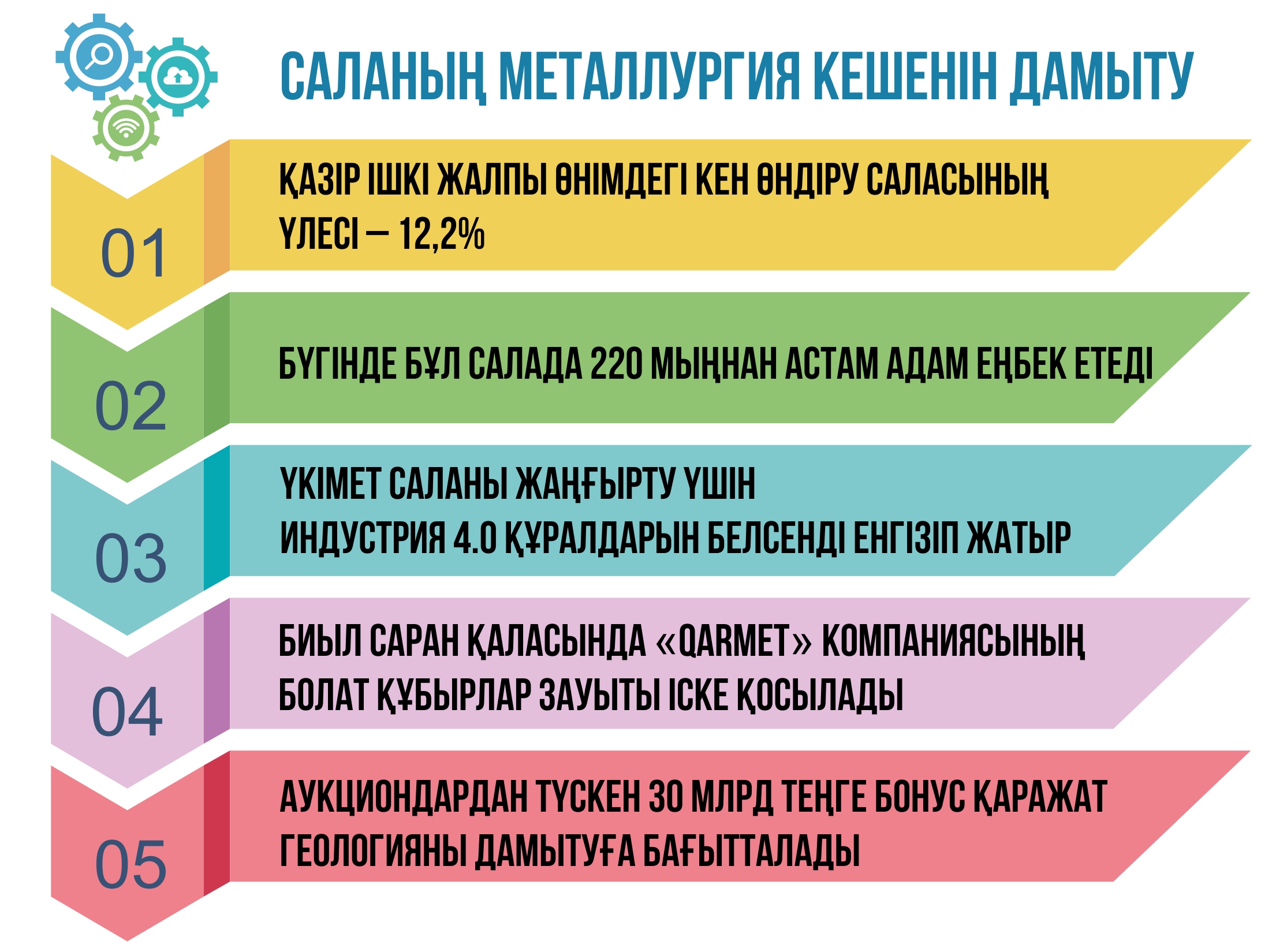 Үкімет саланы жаңғырту үшін Индустрия 4.0 құралдарын белсенді енгізіп жатыр. Автоматтандыру, жасанды интеллект, үлкен деректермен жұмыс істеу – бәрі де тау-кен металлургиясының болашағын айқындайды. Бұл технологиялар тек өнімділікті ғана емес, еңбек қауіпсіздігін де арттырады.