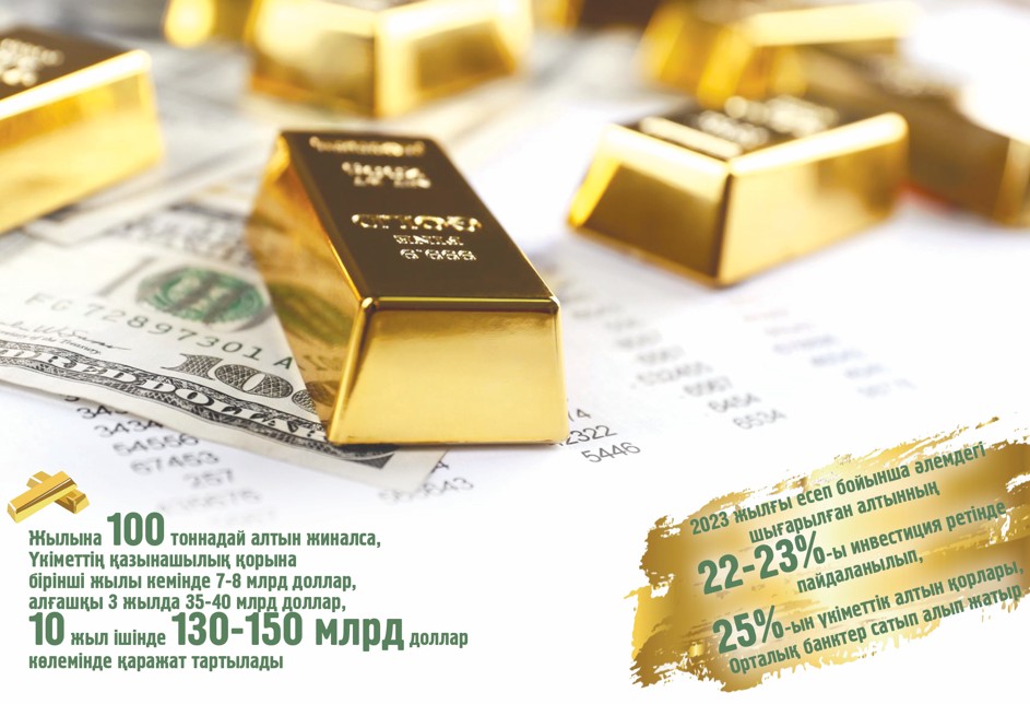 2023 жылғы есеп бойынша әлемдегі шығарылған алтынның 22-23%-ы инвестиция ретінде пайдаланылып, 25%-ын үкіметтік алтын қорлары, Орталық банктер сатып алып жатыр. Мысалы, кейінгі 10 жылда (2013–2023) Ресей 1 347 тонна алтын сатып алып, алтын қорын 2 329 тоннаға, Қытай 1 191 тонна алтын сатып алып, алтын қорын 2 245 тоннаға дейін арттырды (WGC статистикасы). Осылай өзге елдер алтын қорларын еселеп өсіріп, қазынасын молайтып, экономикасын қуаттандырып жатыр. Біз осындай жаһандық мейстримнен тыс қалмауымыз керек.
