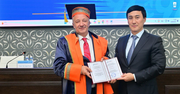 Түркиялық делегацияның келуіне орай ұйымдастырылған ғылыми кеңес мәжілісінде Гази университетінің ректоры Угур Уналға Өзбекәлі Жәнібеков атындағы ОҚПУ-дің құрметті профессоры атағы берілді.