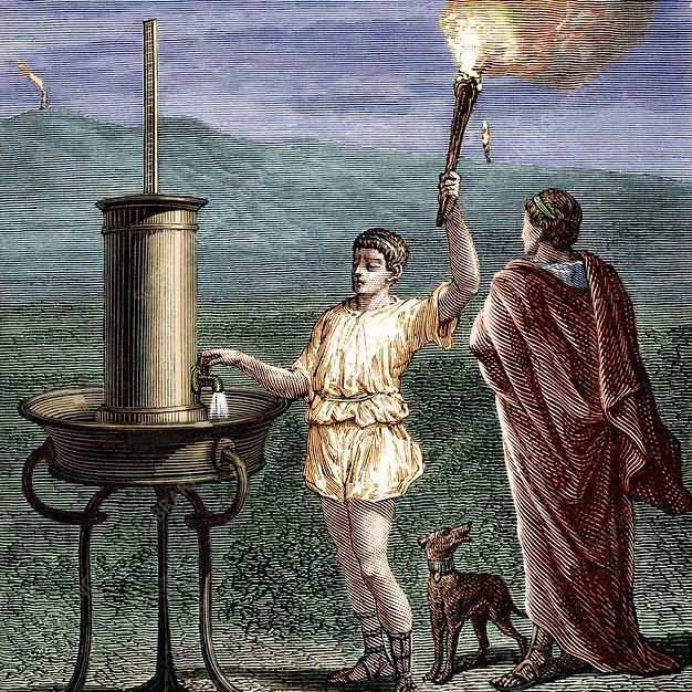 Ежелгі гректер алыс жерге хабар жеткізу үшін су телеграфы деп аталатын тәсілді қолданған. Бұл – жарық белгісі мен су деңгейіне негізделген ерекше жүйе.