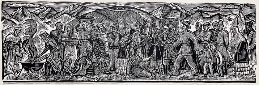 1967–1970 жылдары автордың Абай Құнанбайұлы мен Мұхтар Әуезов мұрасының желісімен жасаған топтама туындылары да әдеби ортада есте қаларлық оқиға болды. Әрине, кейін тарихқа айналды. Абай поэмасының желісінде суреттелген автолитографияларынан терең психологиялық толғаныс сезілді, нәзіктік те байқалды. Ал «Қазақ халқының тұрмысы» атты офорт техникасындағы суреттері жаңа бағыттың бастауы, мол ізденістің нәтижесі деп бағалады өнертанушылар.