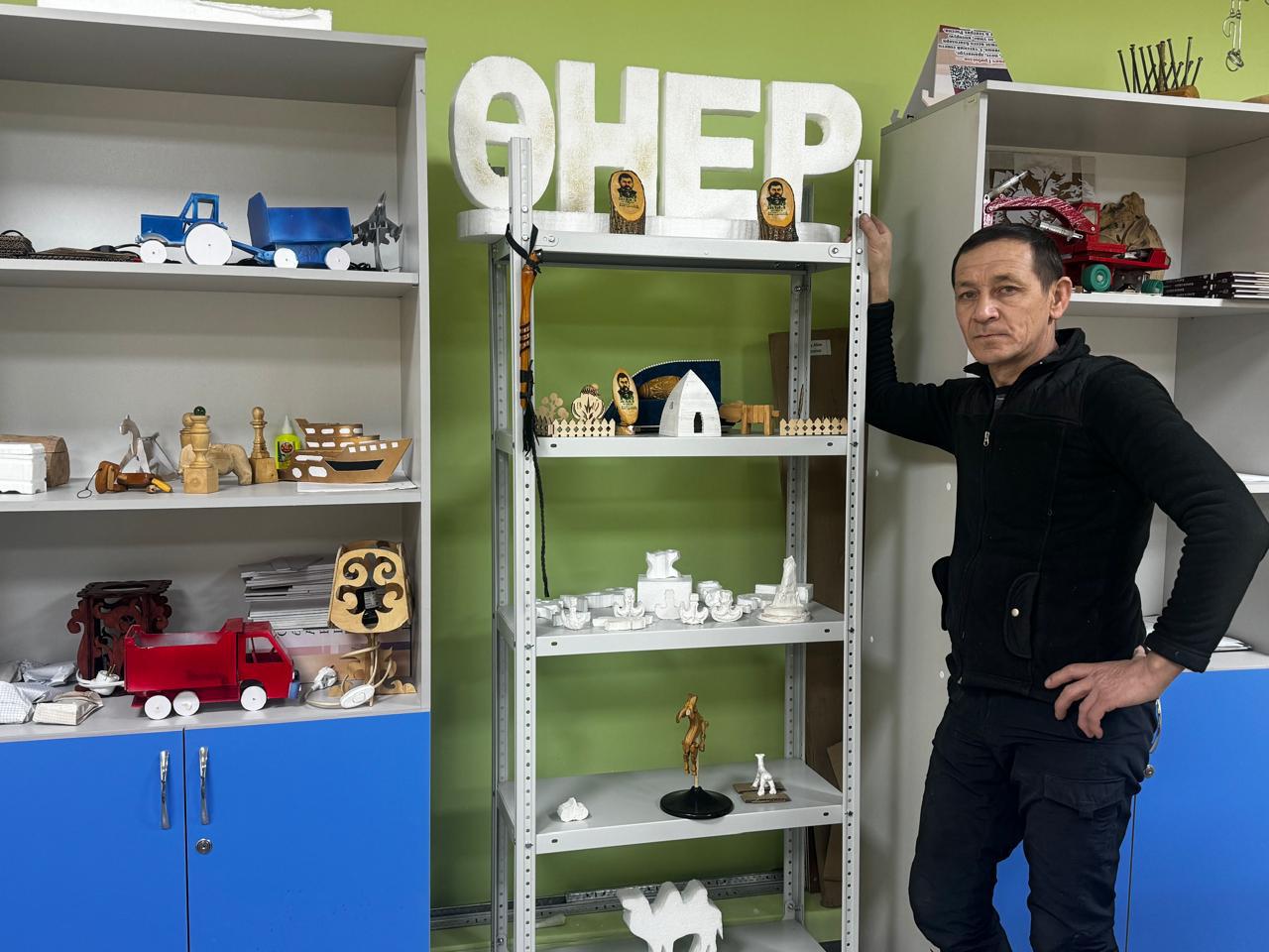 Виталий­дің шеберханасында шебер қолынан шыққан небір шедевр бар.  Ағаштан ойып жасалған тұрмыстық бұйымдар: домбыра, қобыз, бесік секілді. Қу тақтайға жан бітірген шебер ұстаздың шәкірттері көр­кем еңбек пәнінің сабағына қатысуға асығады. Өйт­кені әр сабағын бір-біріне ұқсамай өткізетіндігі ұстаз біліктілігі. «Ер балалар шаруаға икемді болсын дей­мін.  Мектепте қамшы өріп, сап жасап үйренбесе, қазір мұндай тірлікті ауылдың өзінен көрмейміз, өкініш­ке орай», дейді шебер.