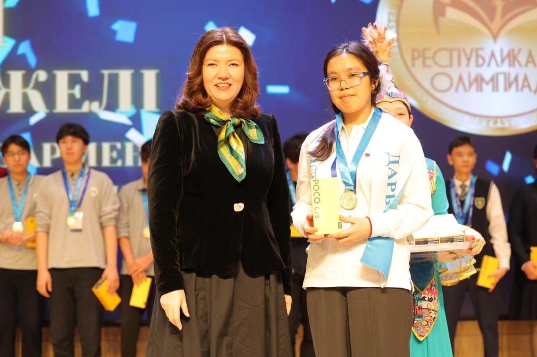 Астанада 9-11 (12) сынып оқушылары арасында физика және биология пәндері бойынша өткен республикалық олимпиаданың жеңімпаздары анықталып, үздіктерге құрмет көрсетілді. Салтанатты шараға Оқу-ағарту министрі Жұлдыз Сүлейменова қатысып, жеңімпаздарға алтын медаль табыстады, деп жазады Egemen.kz.