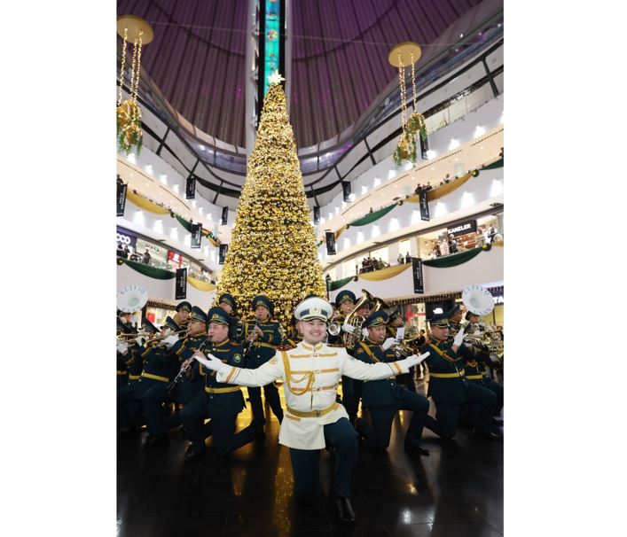 Жаңа жыл қарсаңында Ұлттық ұланның әскери қызметшілері «Хан Шатыр» сауда-ойын-сауық орталығында елорда тұрғындары мен қонақтарына ерекше музыкалық сый жасады, деп хабарлайды Egemen.kz.