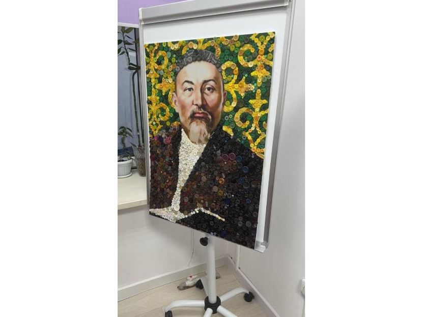 Аталған еңбекті – «Абай аманаты» жобасы аясында №86 «Зияткер» балабақшасының бүлдіршіндері жасады. Портретті әзірлеуге 560 түйме жұмсалған, деп жазады Egemen.kz.